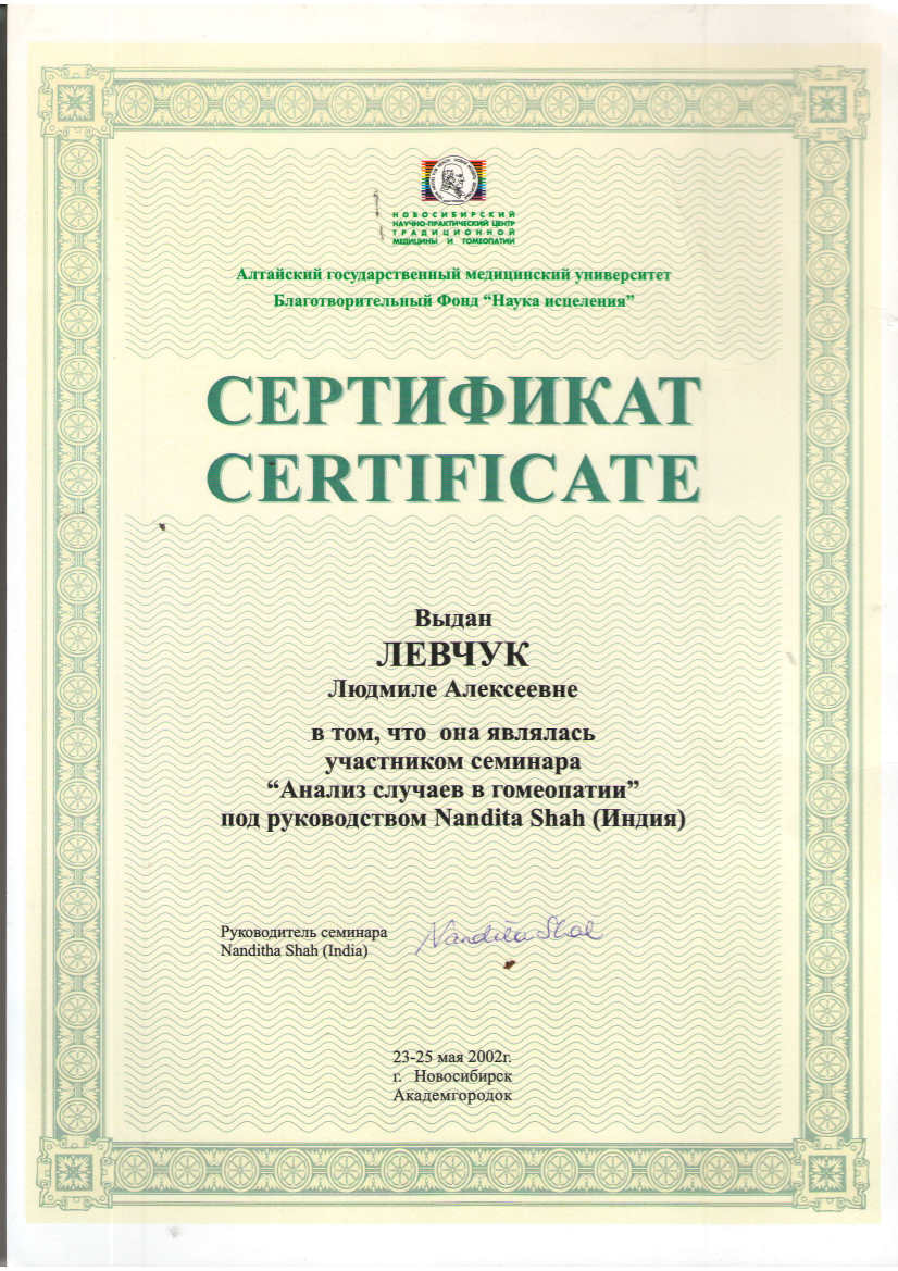 2002г. – семинар Нандиты Шах (Индия) «Анализ случаев в гомеопатии».