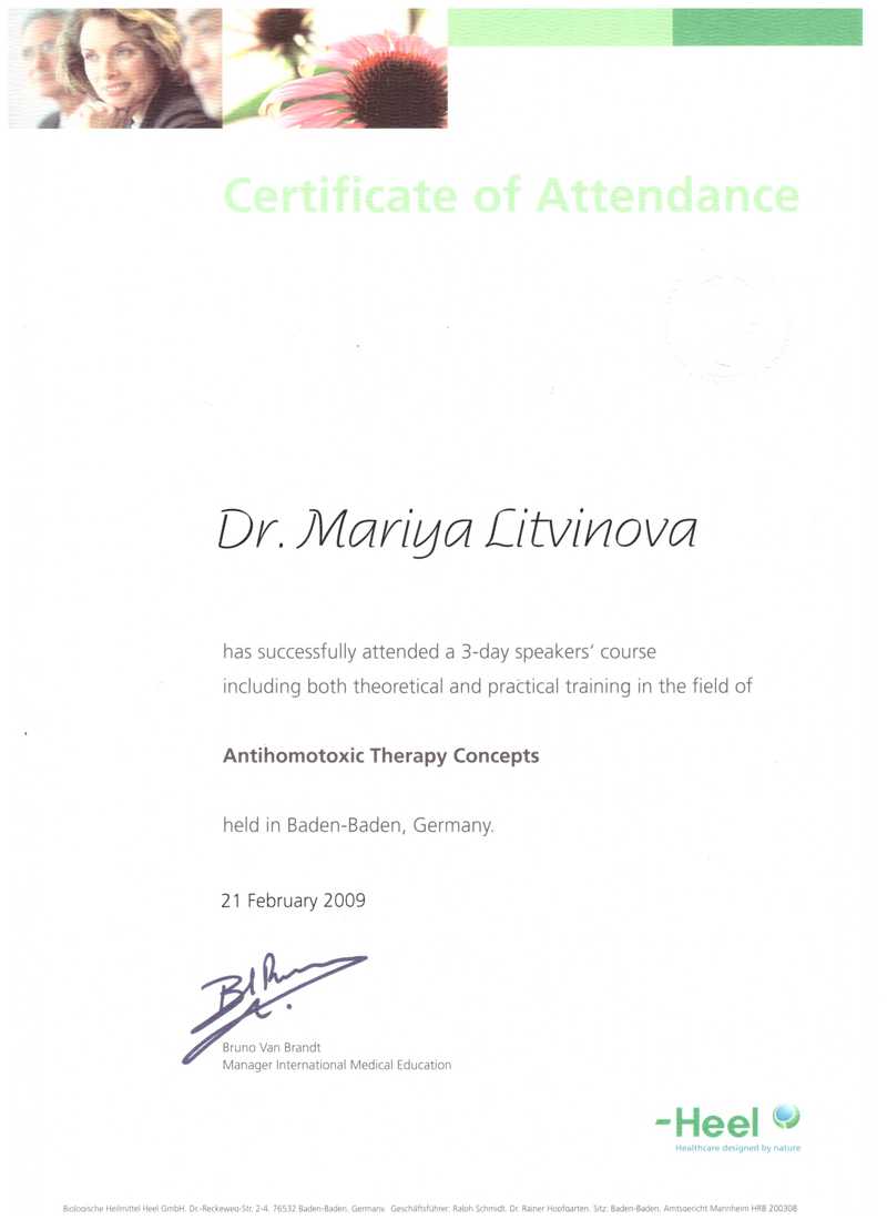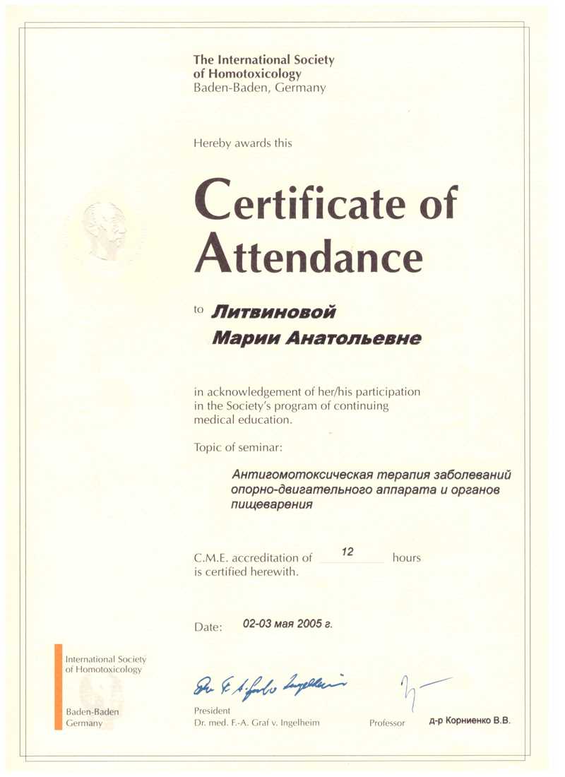 Интернациональная академия гомотоксикологии, Германия , 2004, 2005, 2009 гг..